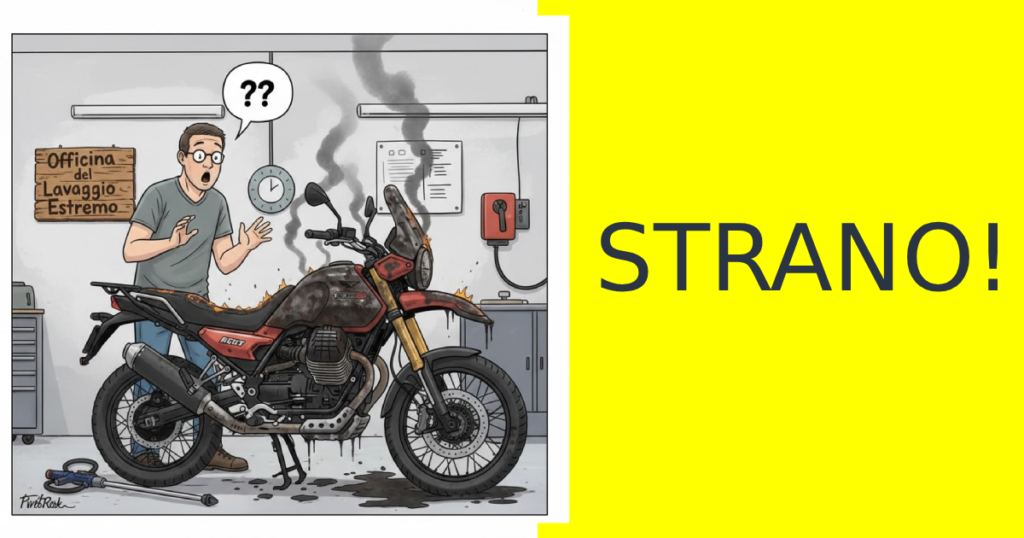 A questo si aggiungono le plastiche che si opacizzano, le guarnizioni che si seccano prematuramente e l’ossidazione di parti delicate del motore. La nostra V85TT è un capolavoro di equilibrio tra meccanica classica e tecnologia moderna: trattarla con la chimica sbagliata significa compromettere quella bellezza che cerchiamo di preservare. Prima di arrivare al “lanciafiamme” della vignetta, ricordiamoci che un prodotto scadente o inadatto può fare più danni di un intero inverno passato sotto la pioggia!